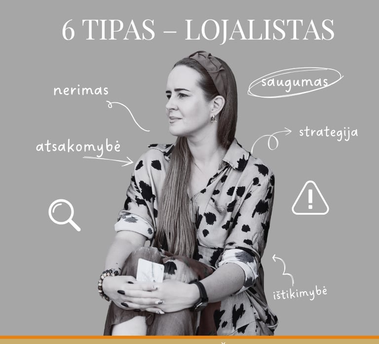 Eneagramos 6 tipas, dar vadinamas „Lojalistu“, yra orientuotas į saugumą, pasitikėjimą ir priklausymą grupei. 6 tipo žmonės yra budrūs ir atsargūs, dažnai galvoja apie galimas grėsmes ir stengiasi užkirsti joms kelią. Jie ieško stabilumo ir patikimumo, tiek santykiuose, tiek gyvenimo situacijose, ir dažnai ieško autoritetų ar sistemų, kurie jiems suteiktų užtikrintumą.